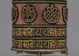 The prayer wheel's copper body, which was crafted with care and precision, exudes a sense of timeless beauty and sacredness. When adorned with carefully crafted mantras and auspicious symbols, it becomes an effective tool for attracting blessings and fostering inner peace.