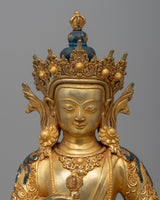 The statue, adorned with a bright 24K gold plating, emits an ethereal glow, symbolizing the Buddha's enlightenment and purity of teachings. Vajrasattva, recognized as the embodiment of purity and the purifying of negative karma, encourages practitioners to grow compassion, wisdom, and spiritual transformation. Whether displayed in a meditation room, shrine, or holy altar, the Tantric Buddha Vajrasattva Statue is a powerful reminder of the path to enlightenment and the transformational power of spiritual practice.