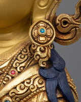 Savor the divine artistry of the Tantric Guru Norla Statue, which is brilliantly gilded with 24K gold and masterfully crafted from copper. Tantric Guru Norla embodies the heavenly energy of prosperity and richness, which is reflected in every finely carved detail, including his luxurious robes and peaceful countenance. This statue invites believers to immerse themselves in its spiritual presence with its aura of elegance and grace, enhanced with radiant gold and acrylic paintings. Its hand-carved gemstone embellishments, which were expertly crafted to accentuate its heavenly glow, resonate with the benefits of riches and success.