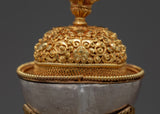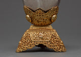 The skull cup, known as Kapala, is a ritual offering cup used in esoteric tantric rituals. When performing ritualistic practices, Kapala is filled with nectars used for performing higher esoteric rituals during tantric meditation to achieve a transcendental state of thoughts.