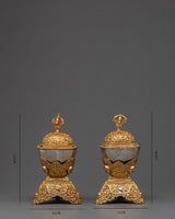 Our Kapala/Skull cup comes in a set of two. This set is completely hand carved and gold plated for a rich finish. The hand-carved details are beautifully done giving it a more attractive look.