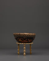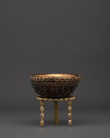 The Kapala set holds the nectar used in higher esoteric rituals. It offers liberation to gods and deities to ensure their devotion. The offerings are said to be transformed into the Wisdom Nectar, a liquid form of the deity's Enlightened Mind.