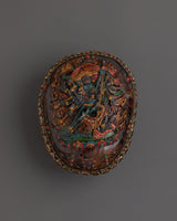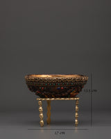 This kapala is a utilitarian offering vessel and a gorgeous work of sacred art, making it ideal for meditation altars, ritual rituals, and spiritual home décor. The harmonious combination of resin, copper, silver plating, and brass enhances its vitality and visual appeal, making it a beloved object among Buddhists, tantric practitioners, and spiritual healers. This tantric spiritual kapala can help you strengthen your ritual practice, create a sacred aura on your altar, and bring transforming energy into your spiritual journey.