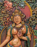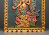 Tara Goddess Wall Hanging Relief Art | Handcrafted Tibetan Wooden Frame Decor