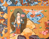 Our thangka is a handpainted Tibetan art done using traditional methods. It is a unique piece created using genuine 24K gold and natural stone colors.