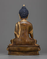 The Enlightened Buddha Shakyamuni in Oxidized Copper - A Spiritual Masterpiece