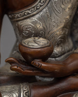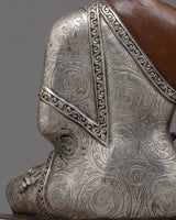 Handcrafted The Buddha Shakyamuni Statue with Silver Plating and Oxidized Copper Body