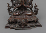 Chenrezig The Buddhist Deity of Mercy Statue's profound spirit can enhance your sacred environment. Measuring 4.1"/10.5cm in height and 0.382 kilogram in weight, a work of art of artwork has a finely handmade oxidized copper body. Blessing your surroundings with his transformative presence is the Buddhist Deity of Mercy, who is regarded in Buddhist tradition as the personification of compassion and spiritual blessings.