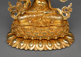 The word "Chatra" alludes to the lucky umbrella, an age-old representation of defense and regal graces that protect the goddess and her followers from misfortune and evil energy. The gold gilding illuminates Tara's figure, emphasizing her divine nature and the spiritual purity of her mission to protect all beings. The vibrant gold and acrylic paintings add depth and vibrancy, highlighting her benevolent expression and the rich symbolism surrounding her.