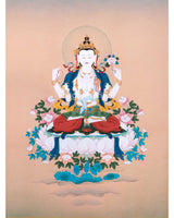 The Compassion Bodhisattva Chenrezig Thangka Art | Four Armed Chenrezig Hand Painted Art For Wall Decoration