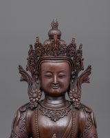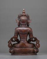 The Deity That Grants Longevity Amitayus Statue, also known as the Buddha of Infinite Life stands at an impressive height of 13.8 inches (35 cm) with a base width of 9.6 inches (24.5 cm), making it a striking and well-proportioned piece of Buddhist art. Crafted with an oxidized copper body, this statue embodies a timeless aesthetic that reflects both spiritual significance.