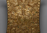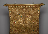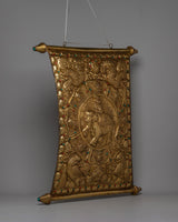 A metal thangka is a type of thangka painting that is made on a metal surface rather than on traditional canvas or paper. Metal thangkas are often made using copper, brass, or silver and are usually decorated with intricate designs and Buddhist iconography using a technique called repoussé. This involves hammering the metal from the reverse side to create a raised relief image on the front. Metal thangkas are known for their durability and are often used in ritual contexts or as decorative pieces in Buddhist homes and temples. They are particularly common in Tibet, where they have been produced for centuries.