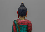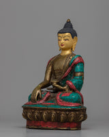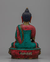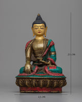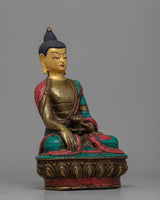 The figure, which is finely inlaid with turquoise and coral stones, radiates balance and harmony. Each stone highlights the statue's golden glow, adding to its aesthetic appeal and spiritual importance. The Happy Buddha - Shakyamuni Buddha Statue is an eternal reminder of joy, wisdom, and the path to spiritual awakening, whether it is placed on a meditation altar or in a hallowed place.