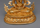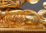 The Immortal Buddha Amitayus Statue, which is 2 kg in weight and stands 9.4"/24 cm tall, will infuse your holy area with tremendous energy. With its 24K gold plating, gold and acrylic paints, and copper body, this incredible work of art is painstakingly made and exudes knowledge and eternal life. Known in Buddhism as the elixir of immortality and longevity, Amitayus bestows his transforming energy on your surrounds. Step upon a path of spiritual development and enlightenment by inviting the radiant energy of Amitayus into your life.