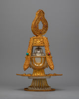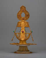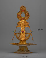 Water is essential in both Hindu and Buddhist rites, and it is always present on the altar, either in a pricey pot or in another container. Bhumba is a pot with the shape of a flat jar and a pipe to draw out the water from the pot that is elaborately embellished with valuable stones and metal.
