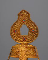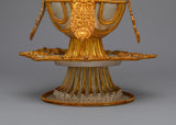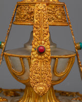 Presenting the exquisitely handmade Long-Life Vase Tsebum, a representation of longevity and prosperity in Tibetan Buddhism. This gorgeous vase has an excellent copper body and is electroplated in both silver and gold, which creates a powerful contrast and adds to its visual appearance. The exquisitely crafted Tsebum is a valuable relic in ceremonies aimed at invoking blessings for long life and well-being because it embodies the rich spiritual heritage and creative traditions of Tibetan culture.