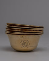 Behold the Offering Bowl Set, a work of divine craftsmanship that occupies the lines of tradition and innovation. Handcrafted with love and dedication from the golden embrace of brass, this set weighs 0.45 kg, with each bowl whispering tales of ancient rituals and contemporary reverence.