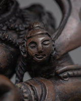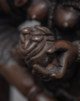 The Singhamukha Statue, which stands 8.3"/21cm tall and weighs 1.340 kg, will provide significant power to your sacred place. With its oxidized copper body and fine handiwork, this fine piece of art exudes knowledge and heavenly power. Renowned in Tibetan Buddhism for her embodiment of knowledge and protection, Singhamukha bestows her transformational energy on your surrounds. Invite Singhamukha's radiant energy into your life and embark on a path of spiritual development and enlightenment.