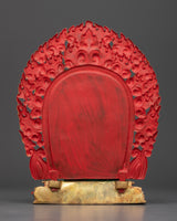 This Black Dzambhala statue stands at 9.25 inches in height and is meticulously painted in deep black, bringing out the original iconography of the deity. The fiery aura halo surrounding Dzambhala is beautifully painted in vibrant red, symbolizing his dynamic energy and protective power. His intricate ornaments are gilded with 24K gold, adding a touch of opulence and enhancing the statue’s visual appeal. These gilded elements contrast beautifully with the black and red tones, making the statue truly captivating.