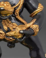 Enhance your sacred space with the powerful and protective energy of Black Dzambhala, captured in this handcrafted The Protector of Wealth statue. Created by skilled artisans in Patan, Nepal—a region renowned for its exceptional metalwork—this statue is not only a work of art but also a profound symbol of wealth, protection, and spiritual prosperity.