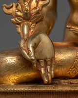 The Three Buddha Set Statues, which represent healing, enlightenment, and boundless compassion, are a revered trio that include Medicine Buddha, Shakyamuni Buddha, and Amitabha Buddha. Standing at 10.8 inches (27.5 cm) tall, each statue is precisely made from a copper body and enhanced with bright 24K gold gilding, giving a harmonious blend of artistry and divine meaning. Each statue's 7.7-inch (19.5 cm) base offers durability and elegance, while the fine craftsmanship, highlighted by gold and acrylic paintings, showcases the Buddhas' tranquil and compassionate expressions.