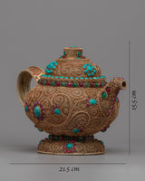 This teapot, which measures 15.5 cm in height, is a representation of craftsmanship, tradition, and beauty. The Tibetan Tea Pot is a piece that will enhance your daily rituals and infuse them with the spirit of the Himalayas, whether you're a tea connoisseur or a fan of fine craftsmanship.