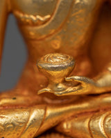 Medicine Buddha, also known as Bhaishajyaguru in Sanskrit, is regarded as the Buddha of Healing. His teachings aim to free sentient beings from sickness, pain, anguish, and unhappiness while also emphasizing the need to acquire prosperity and enjoyment in this life. Many meditators in the Mahayana tradition admire his healing abilities. He is frequently shown with a blue (lapis lazuli) body and hands carrying a begging bowl and medical