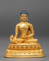 About StatueThe small three Buddha Statue set includes Medicine Buddha, Shakyamuni Buddha, and Amitabha Buddha. These mini statues are made of copper bodies and electroplated in 24k gold. All three Buddhas are sitting on a lotus seat with a calm and peaceful expression holding an alms bowl.