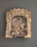 This elegant filigree mask is expertly fashioned of high-quality copper and has delicate handwork and symbolic decoration. The artificial turquoise stones inlaid in the pattern strengthen the mask's protective aura, which is thought to fight against negativity and provide blessings. Whether displayed as a striking wall piece or set on a Buddhist altar, this three-eyed Tibetan mask embodies spiritual depth and creative brilliance, making it excellent for collectors, spiritual practitioners, and those interested in Himalayan culture.