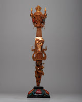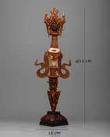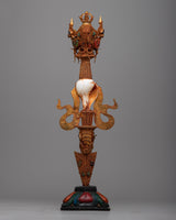 Standing at 49.5cm tall, this Phurba is more than just an object; it is a spiritual tool that guides practitioners on their path to self-discovery and enlightenment. When combined with a wooden base, it becomes a focal point for rituals and meditation activities, instilling reverence and reflection. Whether displayed as art or used in spiritual ceremonies, the Three-Sided Dagger reminds us of the Buddhist tradition's profound wisdom and transformational power.