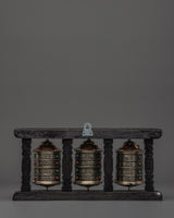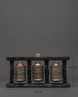 Three-Wheel Prayer Spinner in Wooden Frame | Sacred Spinner for Peace and Purification