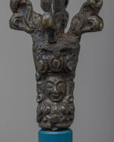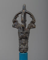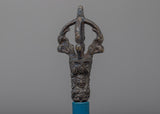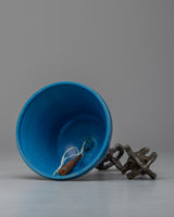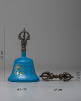 The Throat Chakra Bell with Vajra is a beautifully handcrafted instrument made from bronze, designed to resonate with the energy of the throat chakra. The bell is carefully crafted to produce a clear and melodious sound when struck with the accompanying vajra. The bronze body of the bell is adorned with vibrant blue paint, symbolizing the throat chakra's color and promoting communication, expression, and creativity. The combination of the bell and vajra creates a harmonious and powerful tool for meditation, sound healing, and spiritual practices. This exquisite piece not only serves as a functional instrument but also as a visual representation of the throat chakra's energy and its significance in balancing and harmonizing one's self-expression and communication abilities.