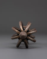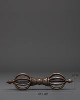 Handcrafted from Iron by skilled Himalayan artisans, the Vajra boasts precise detailing and a balanced structure, making it an ideal choice for both ceremonial use and display. Its warm bronze tone and design reflect the enduring traditions of Tibetan spiritual art. Whether used on an altar, in ritual offerings, or as a meditative focus, it brings strength, clarity, and protective energy into your sacred space.