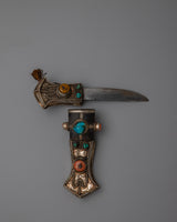 The ceremonial knife is an incredible collectible despite being an object of utility. Combining artificial stones and silver for collectors and aficionados lends a ceremonial significance and elegance that sets it apart. This knife represents an extensive history of culture and skill, whether used in traditions or displayed as a stunning work of art. This stunning Tibetan ceremonial knife will give your collection a dash of historical relevance and incredible elegance.