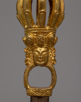 The vajra and bell are integral parts of Tibetan Buddhist rituals and are used to call forth blessings from the divine and drive out evil spirits. Their harmonious interaction, when used together, represents the merger of compassion and wisdom and points practitioners in the direction of spiritual enlightenment and pain-free living. A sacred channel for connecting with the divine and deepening one's spiritual journey, the Vajra and Bell Set can be employed in elaborate temple rituals or in private meditation practice.