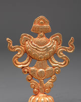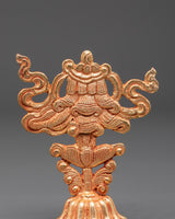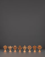 The eight Auspicious Symbols of Tibetan Buddhism are the Parasol, Golden Fish, Treasure Vase, Lotus, Conch Shell, Endless Knot, Victory Banner, and Dharma Wheel. They represent enlightenment, good fortune, and protection. This gorgeous copper set is ideal for Buddhist, yoga, and meditation practitioners who desire to personalize their sacred spaces with important cultural artwork. Each symbol has profound spiritual meaning and acts as a reminder of attention, compassion, and positive energy.