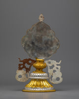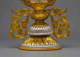 This set is more than just a pretty thing; it's a significant relic representing fine craftsmanship and profound spiritual principles. The spirit of traditional Tibetan art is captured by the use of copper with electro-gold and silver plating, which ensures longevity and a timeless aesthetic appeal. The Tibetan 8 Auspicious Symbols set offers both visual brilliance and spiritual enrichment, with each element meticulously made to reflect its spiritual virtues. It is a priceless addition to any collection or hallowed space, serving as a monument to the rich spiritual and creative traditions of Tibetan Buddhism.