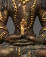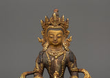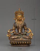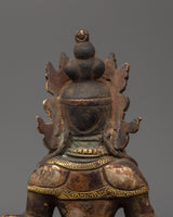 Amitayus, a deity adored in Mahayana and Vajrayana traditions, is associated with longevity, wisdom, and merit. Placing this deity in your sacred area invokes benefits for a long, healthy, and enlightened existence. The statue's antique patina reflects a timeless spiritual energy, making it both a strong spiritual object and a valuable piece of Himalayan art. This Amitayus sculpture is a dazzling emblem of boundless life and inner calm, whether utilized for daily meditation or devotional practice.