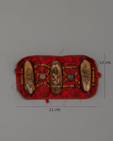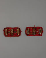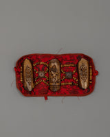 In Buddhism and spiritual traditions, Guru fabric sets are used in rituals to honor holy instructors, saints, and deities. The metal embellishments indicate almighty strength, whilst the fabric parts reflect humility and devotion. Wearing or giving this traditional set is said to bring blessings, spiritual wisdom, and safety.