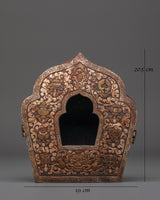 Creating this box involves both technical skill and an understanding of Tibetan spiritual traditions. Artisans hand-carve each design, illustrating the close link between art and spirituality in Tibetan culture. The central open archway enhances its mystique, inviting energy and functioning as a vessel for sacred relics. Its craftsmanship and meaningful motifs make this Ghau Box a valuable tool for meditation, prayer, or decoration in sacred spaces. It is an ideal piece for those wanting to connect with Tibetan cultural traditions.