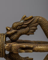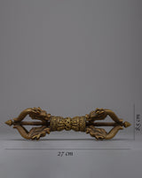 Look at this beautiful Tibetan Brass Vajra, which has been expertly handcrafted. The high-quality brass used to create this magnificent vajra is known for its durability and lustrous appearance. It draws attention and accentuates the intricate details of its design with its 27 cm width. You can feel the weight and energy of the craftsmanship as you hold this sacred object in your hands, which serves as a reminder of the divine knowledge and transforming power it symbolizes. On your journey, let the Tibetan Brass Vajra serve as a potent representation of your spiritual prowess and enlightenment.