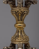 The combination is made more visually appealing and represents purity and clarity of thought owing to the silver plating on the bell handle and vajra, which also adds a touch of elegance and refinement. This set is a powerful tool for spiritual development and awakening, whether it is employed in ceremonial ceremonies or personal meditation practices. The Tibetan Bronze Buddhist Vajra and Bell set urges practitioners to awaken their inner wisdom and strengthen their connection to the holy via its rich symbolism and timeless beauty.