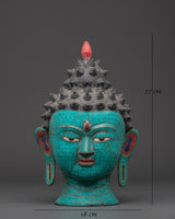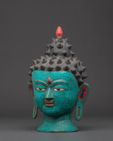 This Tibetan Buddha Head Statue, wonderfully carved from brass with coral and turquoise inlay, will bring serenity, mindfulness, and heavenly blessings into your area. This sacred figure, 27cm tall, 18cm wide, and weighing 1.91kg, depicts the Buddha's peaceful presence, exuding compassion and wisdom. Its delicate craftsmanship makes it an ideal focal point for spiritual home decor, meditation areas, or yoga rooms.