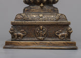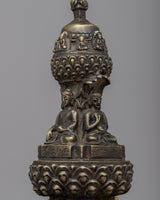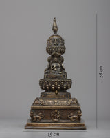 Immerse yourself in the timeless beauty of the Handcrafted Tibetan Buddha Stupa, a masterful creation on a Brass body. This magnificent stupa captures the essence of ancient artistry with its antique-style design, reflecting the profound spiritual heritage of Tibet. Adorned with intricately crafted Buddha figures, this stupa becomes a symbol of enlightenment and divine wisdom. Let its presence infuse your space with a sense of serenity and reverence, inviting you to connect with the profound teachings of Buddha. Embark on a spiritual journey and bask in the sacred aura of this extraordinary Tibetan Buddha Stupa.