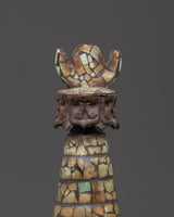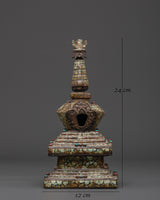 This Tibetan Buddhist Copper Stupa is a beautifully created spiritual art item intended to bring calm and enlightenment into your home. This handcrafted copper stupa, measuring 24 cm tall and 12 cm broad, represents strength and protection. Embellished with brilliant artificial turquoise stones, it is a gorgeous and strong symbol of Buddhist heritage, contributing to a relaxing and meditative atmosphere. This stupa is ideal for meditation rooms, altars, or any other spot where spiritual tranquillity is desired. It has great cultural and spiritual importance.