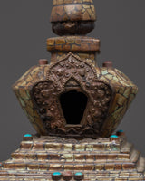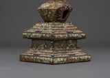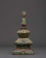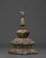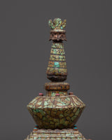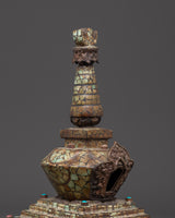Exquisite Tibetan Buddhist Copper Stupa | Spiritual Art with Turquoise for Home & Meditation Spaces