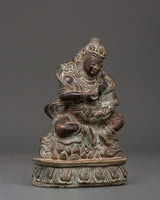 Tibetan Buddhist Dzambhala Oxidized Copper Statue | Sitting on Lotus