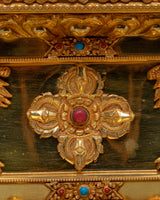 The Enlightenment Stupa's iconography is rich in Buddhist art and meaning, making it a spiritual focal point. The goal for enlightenment is central to its design, as seen by elaborate designs and beautiful decoration. The gilded surfaces and inlaid stones depict a harmonic balance of understanding and compassion, with coral representing the life force, turquoise representing protection, and lapis lazuli representing wisdom and inner peace. The stupa is decorated with auspicious symbols, floral designs, and Buddhist motifs, each representing a sacred story. This stupa is not only a site of profound spiritual practice, but also an amazing work of art that inspires a deeper connection to the Buddha's teachings and the road of freedom.