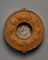The Tibetan Buddhist Ghau Box is a copper container used to hold a Tibetan Buddhist amulet that is worn as jewelry as a compact container for keeping and transporting potent amulets. A written prayer or holy mantra chart like Kalachakra is typically included in the Gau box used in Tibet, Nepal, Bhutan, and Mongolia. A priest typically writes or prints prayers and mantras, and they are always blessed before usage.