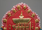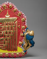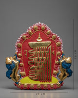 "Ten Syllables of Power" is the Tibetan Buddhist Kalachakra Mantra. The brief Kalachakra mantra is represented by the 10 letters that make up the symbol. It conveys the core of the Kalachakra Tantra's teaching on the energy that is independent of temporal and spatial notions. The 84,000 precepts of enlightenment are represented by these "Ten Syllables of Power." In Tibet, this Kalachakra representation is frequently utilized as a decorative object.